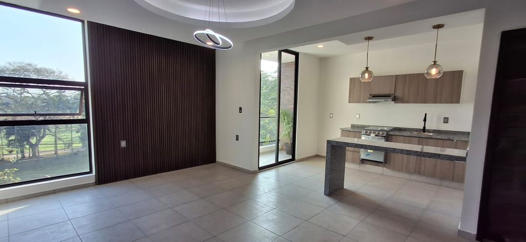 - Cocina funcional: Barra de granito y lámparas colgantes que añaden un toque sofisticado.