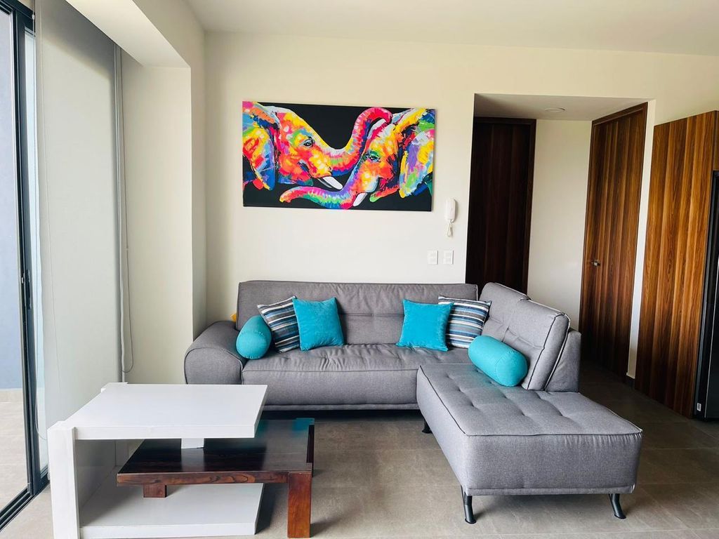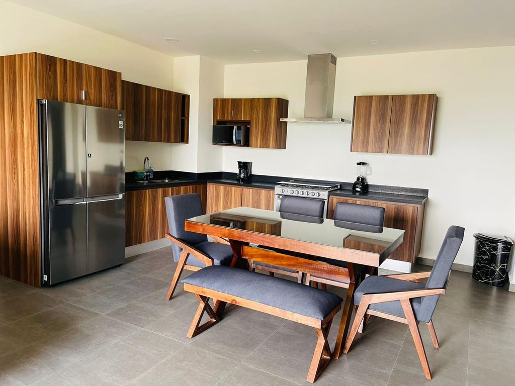Imagina despertar y tener a tu disposición un gimnasio para empezar el día, o disfrutar de la alberca en un caluroso atardecer. La cocina integral, con sus acabados de lujo, te invita a preparar tus platillos favoritos mientras la sala, con su diseño acogedor, te espera para momentos de descanso. Este departamento no es solo un espacio, es la combinación perfecta de funcionalidad y amenidades que te harán sentir en un resort todos los días. ¡Tu nuevo hogar te espera para que crees recuerdos inolvidables!