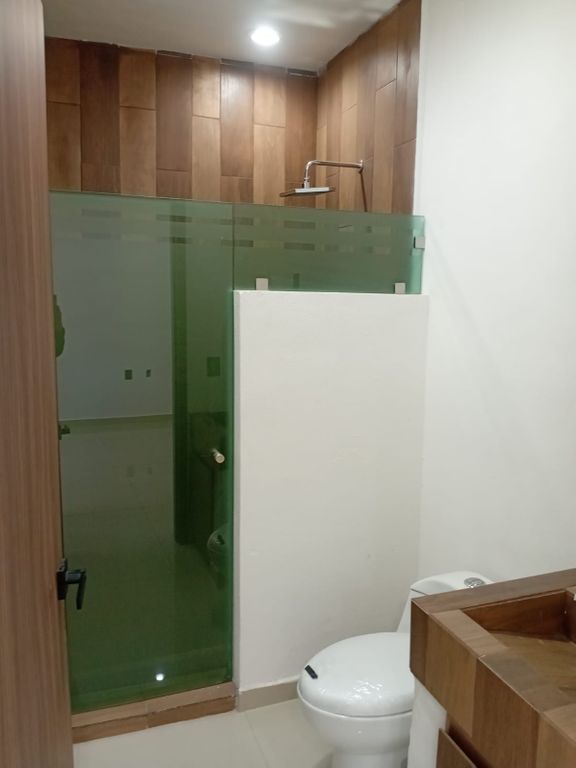 Baño completo compartido con cancel y puerta de cristal