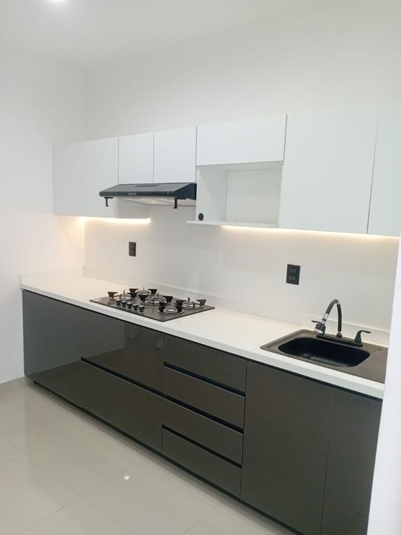 Cocina integral de alto brillo con iluminación