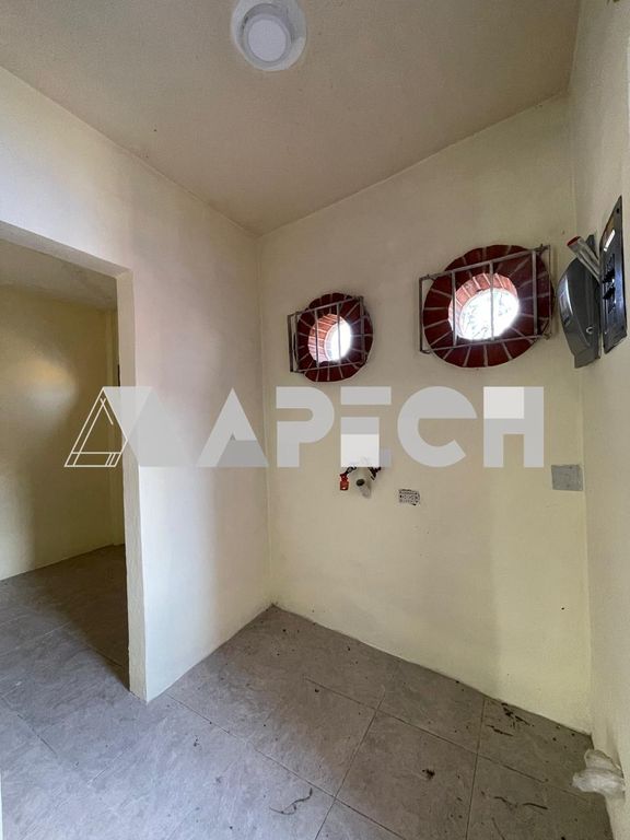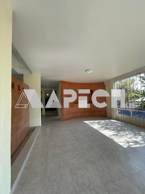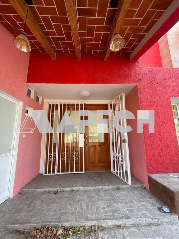 Cuenta con jardín, garage para 2–3 autos, sala, comedor, cocina con dispensario, estudio/oficina, cuarto de lavado y 2 medios baños.