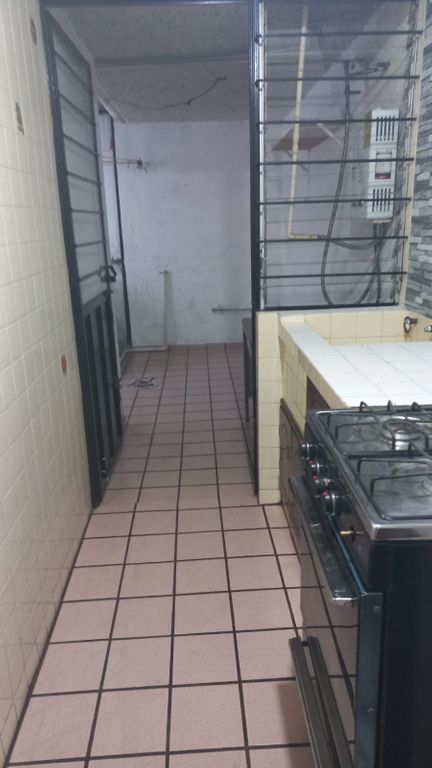 The property features a functional living and dining area, three bedrooms with closets, one full bathroom, and a practical service patio with a wash basin, partially covered for added comfort. It also includes a water tank and solar water heater, promoting efficiency and everyday convenience.