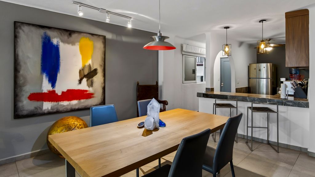 La Palapa 106 es un condominio frente al mar de 2 recámaras y 2 baños, con una superficie de 120.50 m², ubicado dentro del reconocido Condominio La Palapa, en plena Zona Romántica de Puerto Vallarta, una de las áreas más demandadas y dinámicas de la ciudad. La residencia ofrece un diseño de concepto abierto en sala y comedor, con una distribución funcional y bien aprovechada. Los espacios interiores son cómodos y bien proporcionados, creando un ambiente agradable tanto para el uso diario como para recibir invitados. La cocina se integra de manera natural al área social, lo que la hace práctica y versátil para la vida cotidiana y reuniones informales. Ambas recámaras cuentan con excelente tamaño y privacidad. La recámara principal dispone de baño completo en suite y clóset, mientras que la segunda recámara y el baño completo adicional son ideales para visitas, familia o como espacio flexible de trabajo.La Palapa Condos es un desarrollo frente a la playa, ubicado directamente en Playa Los Muertos, a pasos de algunos de los restaurantes más emblemáticos de Puerto Vallarta como La Palapa Restaurant y El Dorado, así como del Malecón, cafés, galerías, bares y vida nocturna. La ubicación permite disfrutar caminando de todo lo que hace tan atractiva a la Zona Romántica.
