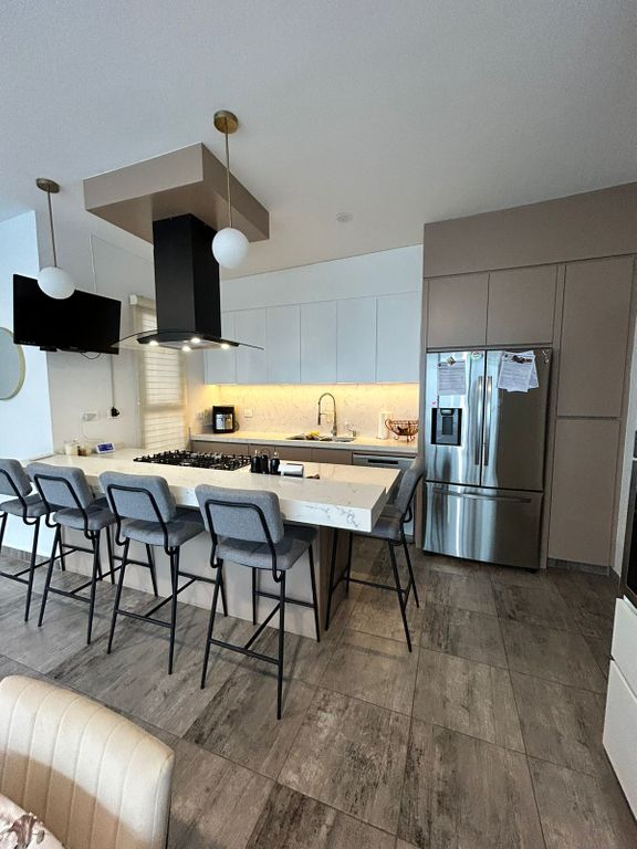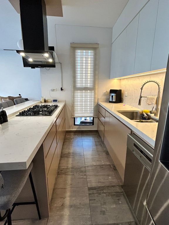 Equipada con cámaras de seguridad y alarma. Cocina con refrigerador, lavavajillas, extractor y TV de 32”.