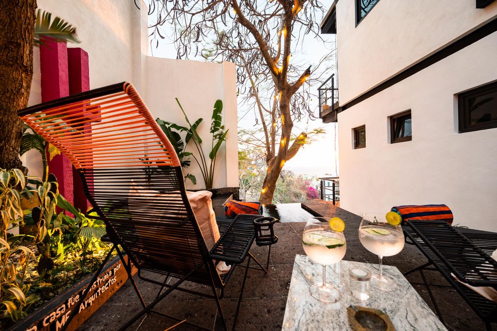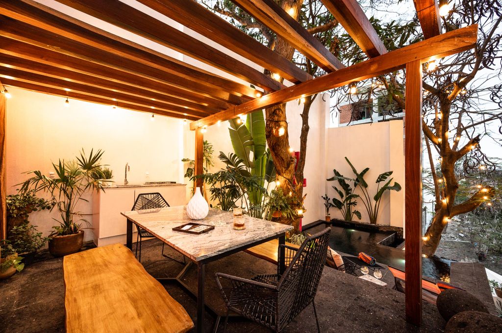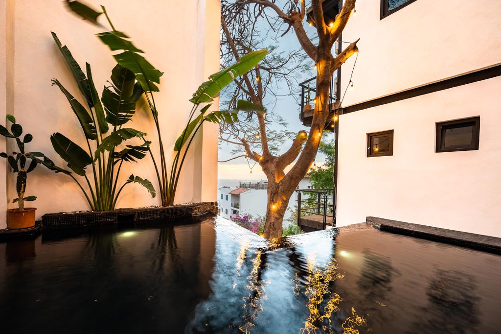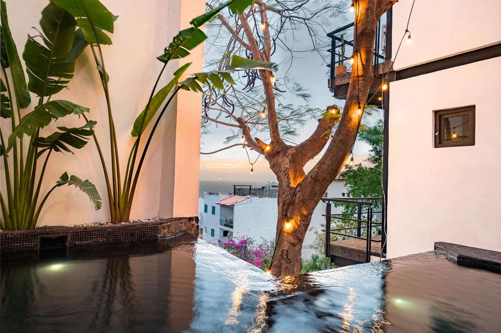 Descubra una extraordinaria residencia de varios niveles ubicada en la prestigiosa zona de Alta Vista, asentada sobre la colina y diseñada para capturar vistas panorámicas al océano, la Sierra Madre y el río Cuale desde varios niveles de la propiedad. Esta imponente casa de cuatro pisos combina arquitectura contemporánea con elegantes acentos mexicanos, creando un entorno sofisticado y acogedor a solo minutos de la vibrante Zona Romántica. La propiedad cuenta con siete amplias recámaras y nueve baños, ofreciendo una gran versatilidad de uso: como residencia para una familia numerosa, un elegante bed and breakfast, una casa de huéspedes boutique o una inversión para rentas vacacionales de alto rendimiento. Su distribución permite incluso la posibilidad de operar las áreas como unidades independientes, incrementando su atractivo como activo de inversión.Cada nivel dispone de generosas terrazas que integran armoniosamente los espacios interiores con el entorno natural, ofreciendo escenarios privilegiados para disfrutar de espectaculares atardeceres, vistas a las luces de la ciudad y la exuberante vegetación de la montaña. La terraza en el techo destaca especialmente por sus vistas panorámicas excepcionales, convirtiéndose en un espacio ideal para el entretenimiento o la contemplación.