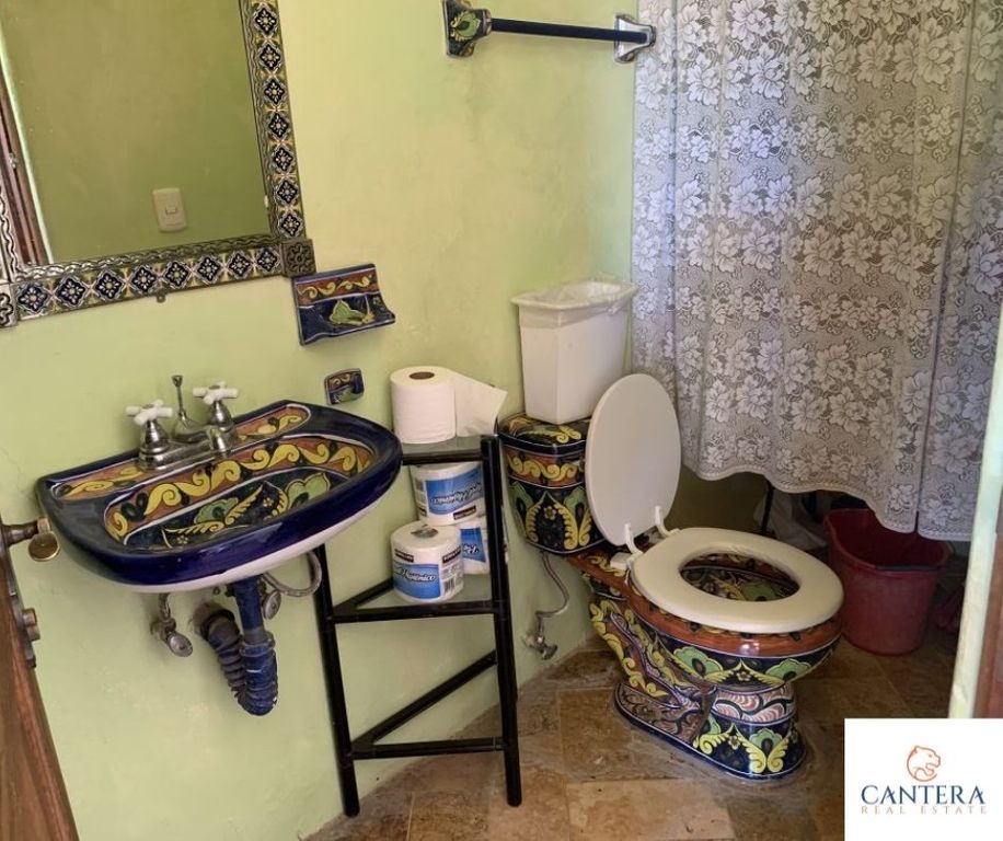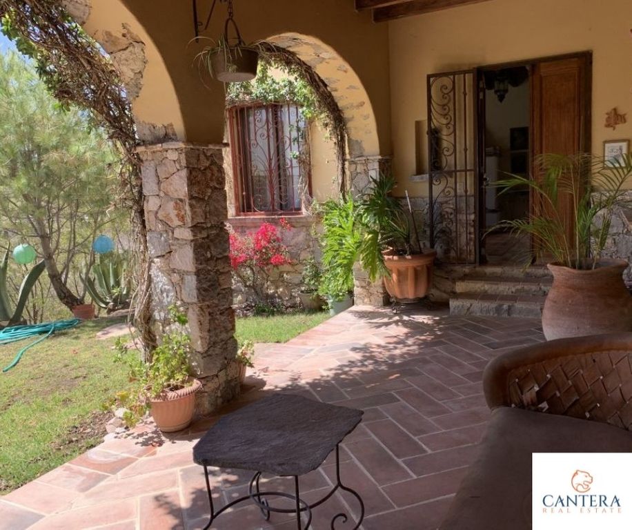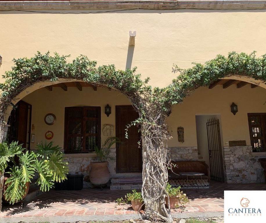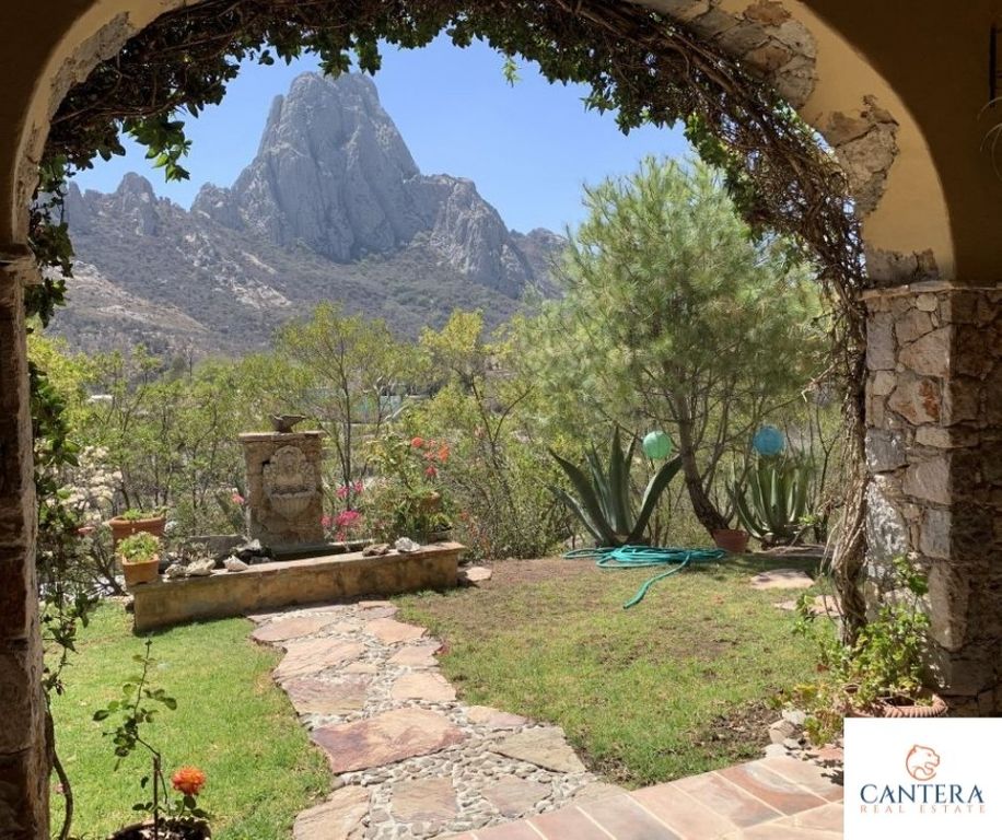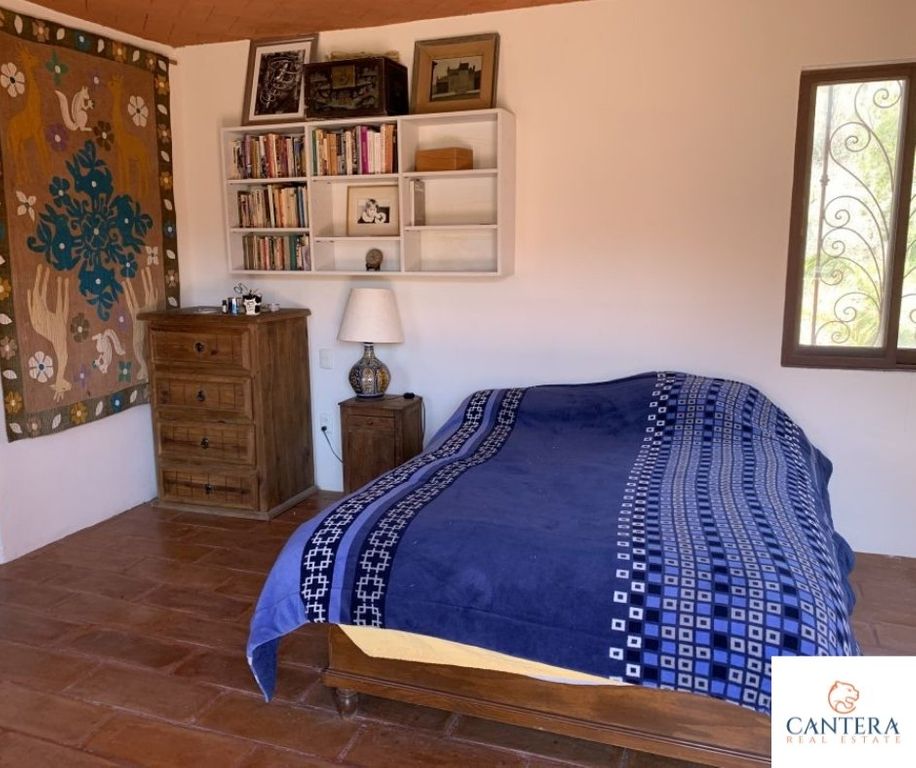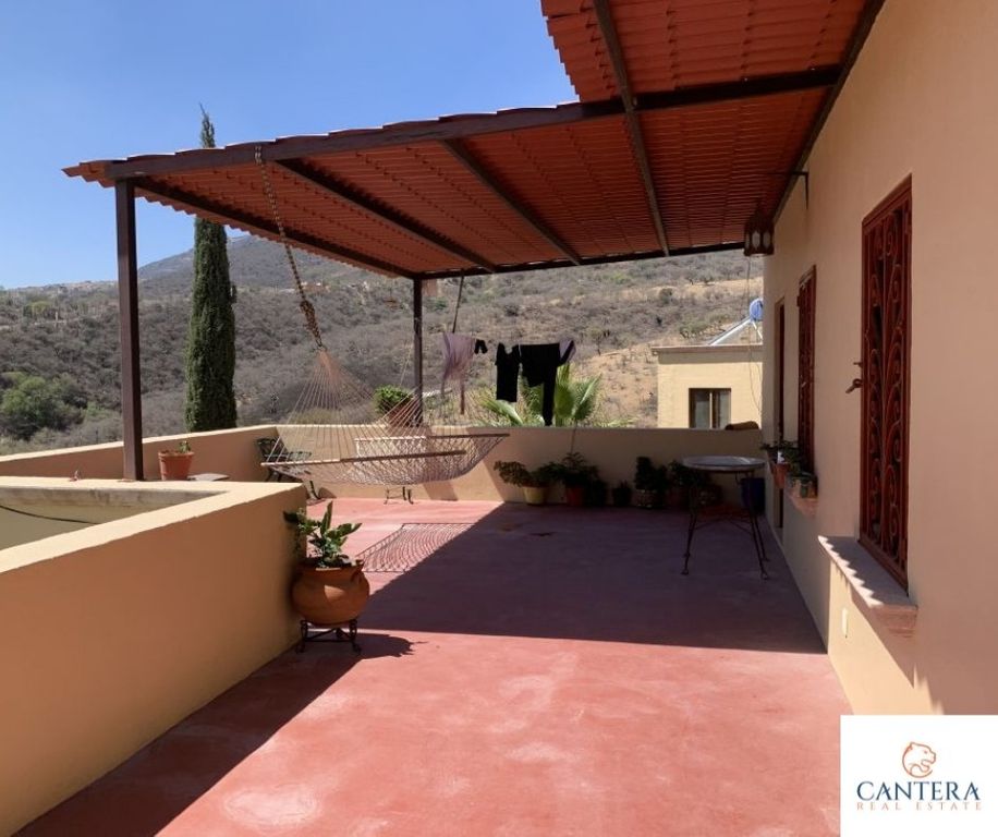 Beautiful Cozy house to enjoy the weekends, or relax from the city. With a fine Mexican style in front of the Peña de Bernal, in the community of San Antonio de la Cal. The house is located on a descending land of 2.47 acres m, distributed as follows, on the ground floor, we have a nice porch with plants and trees, garage for 8 cars excellent for visits, dining room with a beautiful barrel vault, guest bathroom, kitchen with talavera tiles, Kitchen island, master bedroom with double sink bathroom and Jacuzzi, large walking closet, terrace with a incredible view of the Peña de Bernal, huge garden area, office room, in PA, bedroom with bathroom, laundry room and terrace overlooking the community and the rock. Crossing the garden we find another office with a bathroom and upstairs, a small apartment with a bedroom, bathroom, and kitchenette. 80,000 liter cistern, orchard, greenhouse, solar panels, wastewater treatment system, totally sustainable.La casa del Arquero
