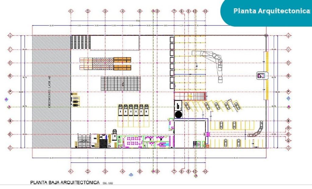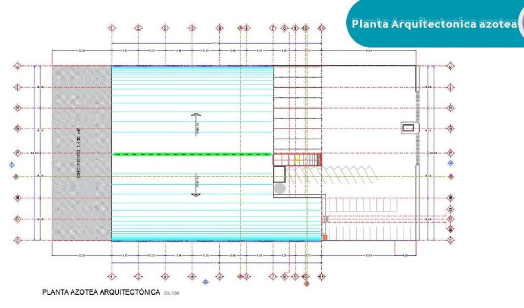 Estacionamiento: El área de estacionamiento es de 1180.75 m2 con 34 cajones.