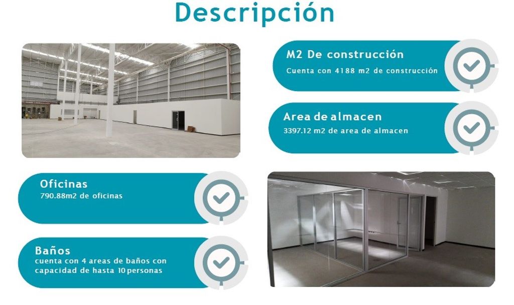 Nave de 4,188 m2 dentro de la cual se encuentran las oficinas con un área de 790.88 m2