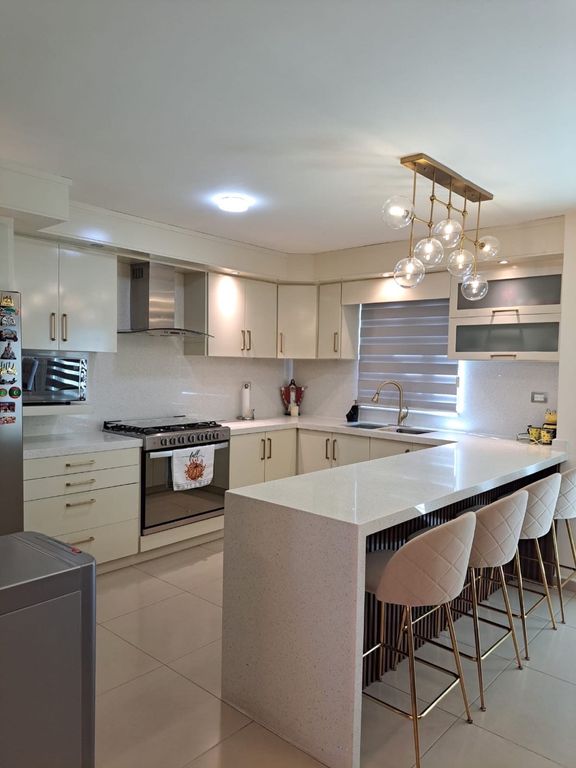 Cocina equipada con cubierta de cuarzo