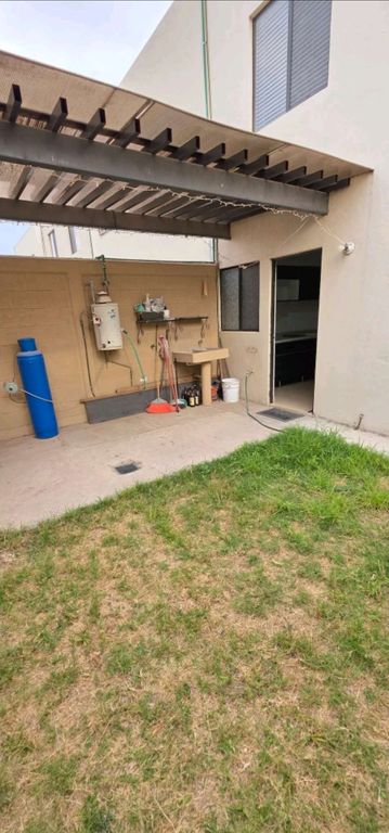 ???? Patio trasero de 27 m² con media plancha de concreto y techo de policarbonato en el área de lavado