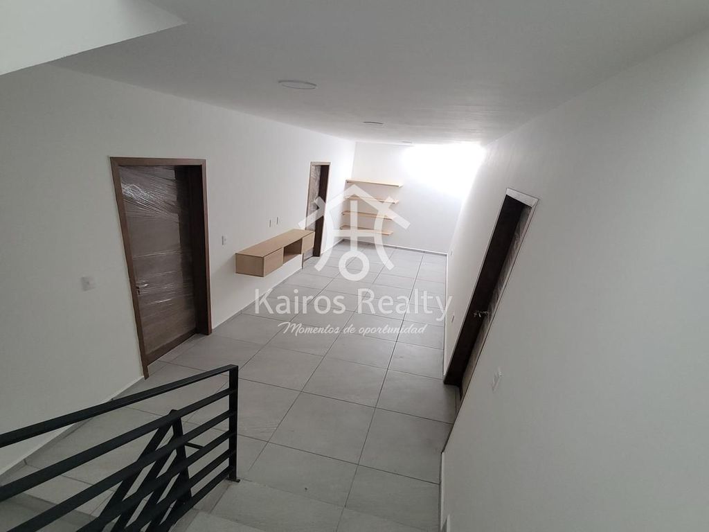 - Primer nivel: Sala-Comedor, recámara/estudio, baño completo, cocina y estacionamiento semitechado.