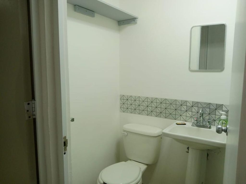 -> Sala-comedor, cocina, área de lavado, 1 baño completo, 2 recámaras con clóset, 1 lugar de estacionamiento.