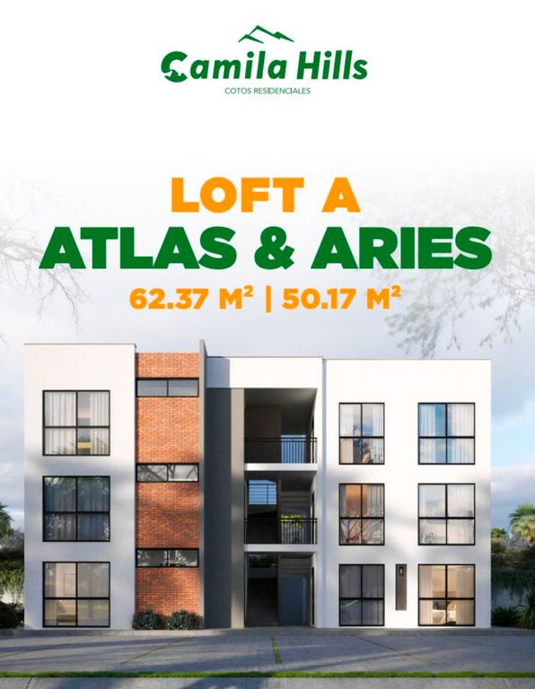 El Modelo Atlas es un loft de 62.37 m² de construcción, diseñado para quienes buscan un espacio moderno, funcional y con excelente ubicación dentro de Camila Hills Coto 6.