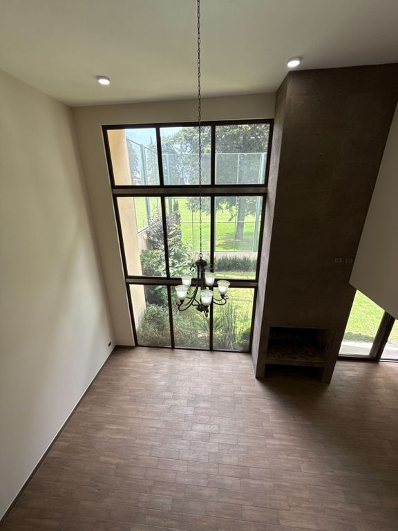* Sala con doble altura y amplios ventanales que brindan mucha luz natural.