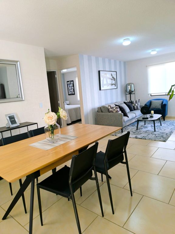 Sala-Comedor, Cocina, 2 Recamaras, Área de lavado, Baño completo, Patio trasero y Estacionamiento para 1 automóvil. (Cocina y closets de regalo)