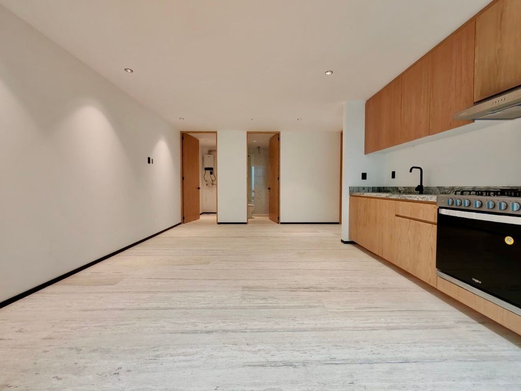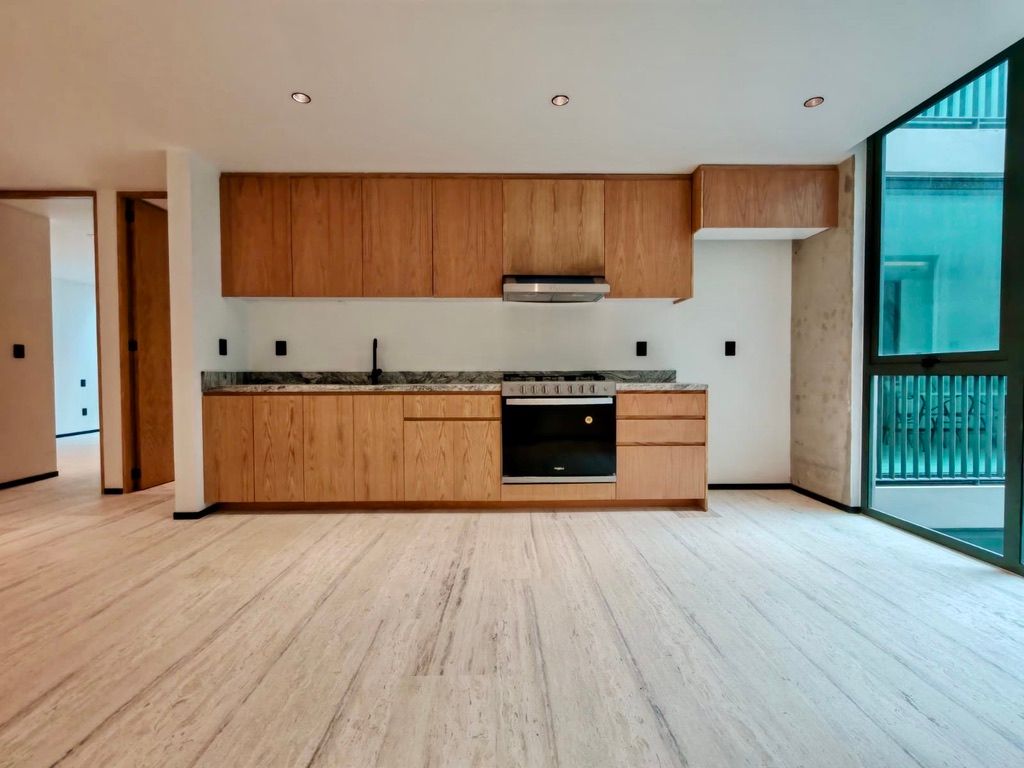 * Acabados de lujo: Pisos con veteado de mármol, cocina integral con gabinetes de madera y cubierta de granito.