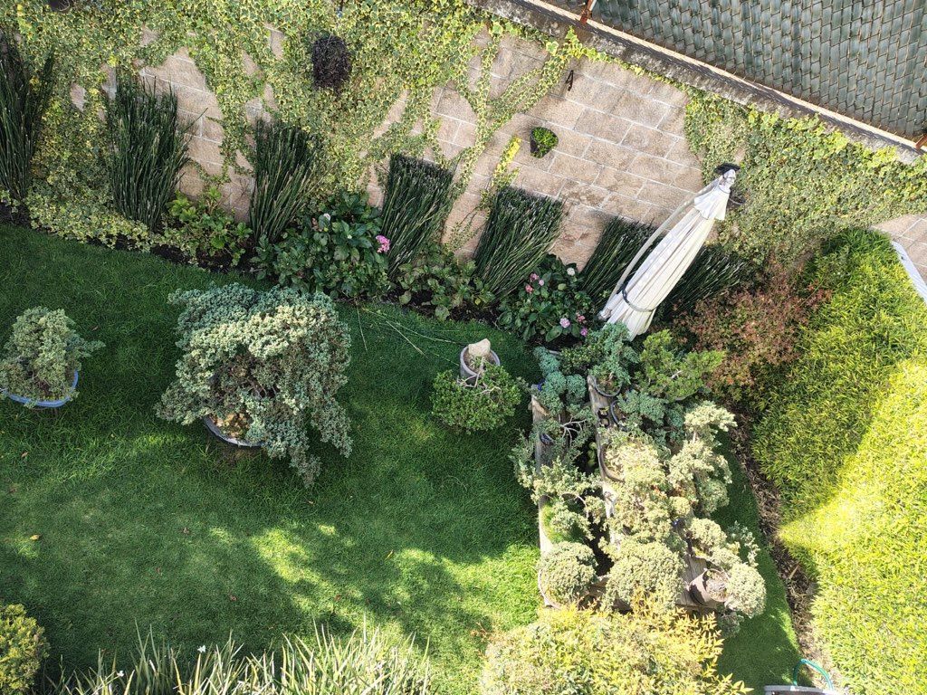 * Un jardín con césped y vegetación, ideal para disfrutar del exterior.