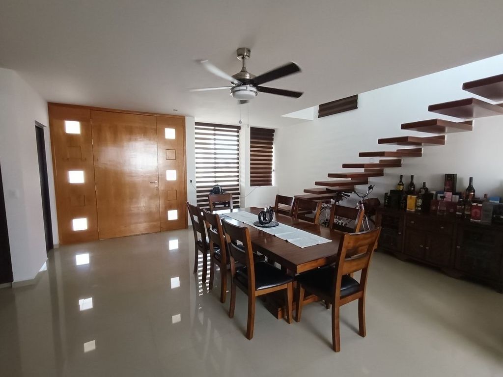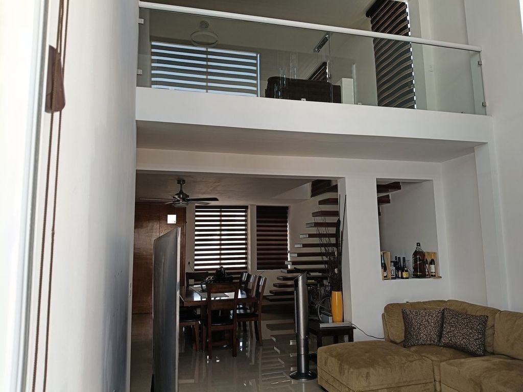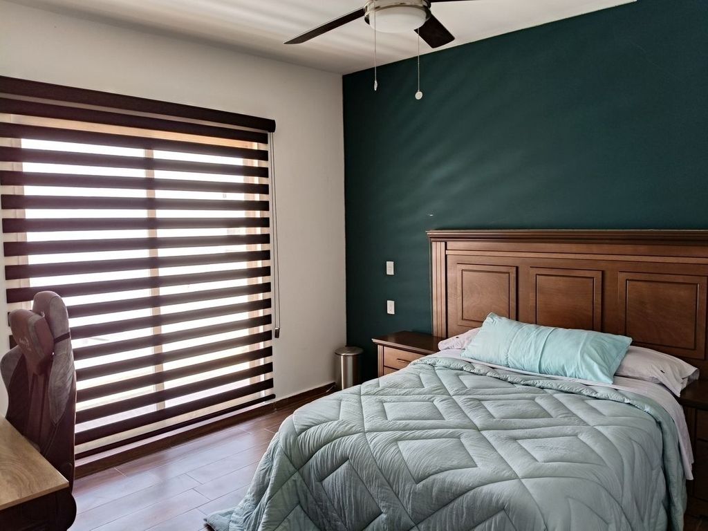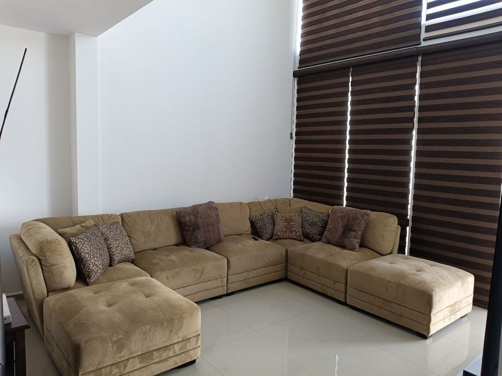 Venta de casa en Grand Juriquilla con amplios espacios, la casa cuenta con: Planta Baja: Cocina Integral con barra de granito, amplio closet de despensa, cuarto de lavado, patio para tendido techado, sala con doble altura, comedor, patio trasero con muy buen tamaño, recámara con baño completo. y closet de piso a techo.Planta Alta cuenta con área de TV, tres recámaras cada una con baño completo, la recámara principal cuenta con terraza y vestidor así también una secundaria, la otra con closet de piso a techo, toda la casa cuenta con ventiladores, persianas y mosquiteros, tinaco de 1100 lts, dos hidros, calentador solar y normal, garaje para dos autos, cisterna de 2500 lts, se encuentra en esquina y muy cerca a las áreas comunes.
