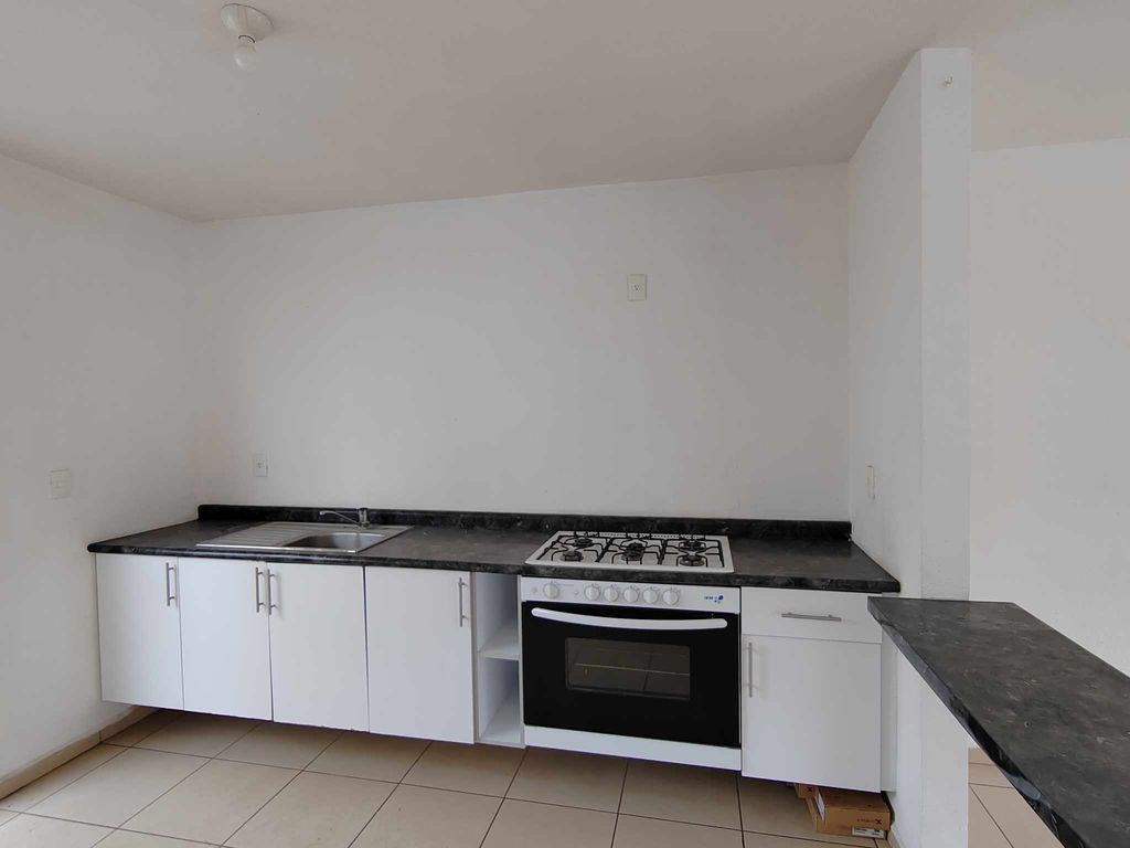 SALA, COMEDOR, ½ BAÑO, COCINA EQUIPADA ESTUFA, AREA DE LAVADO CON BODEGA, Y JARDIN POSTERIOR.