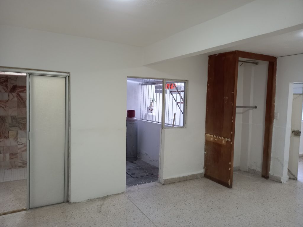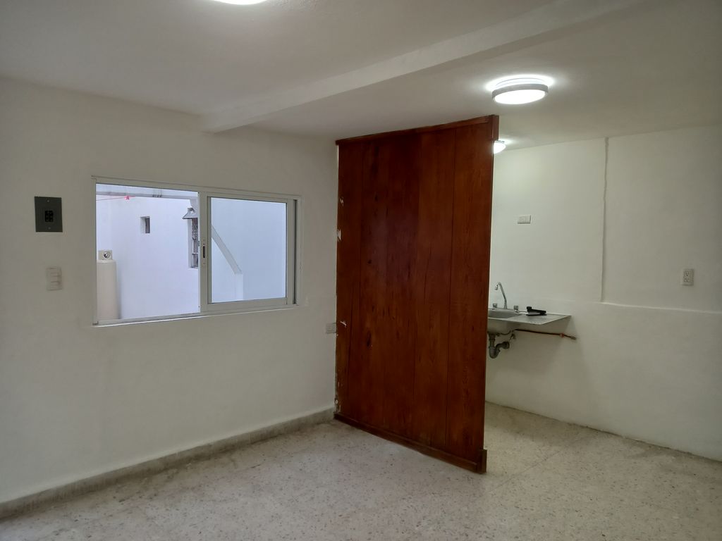 Vista interior. Distribuido de la siguiente manera: 1 recámara, sala comedor, área para cocineta, un closet, baño completo al interior del departamento lo que te permite más privacidad y zotehuela.