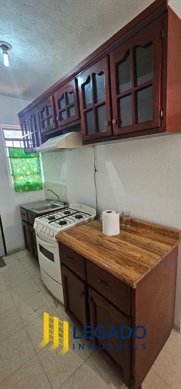 Accesorios: cocina integral con alacenas, campana, estufa, refrigerador.