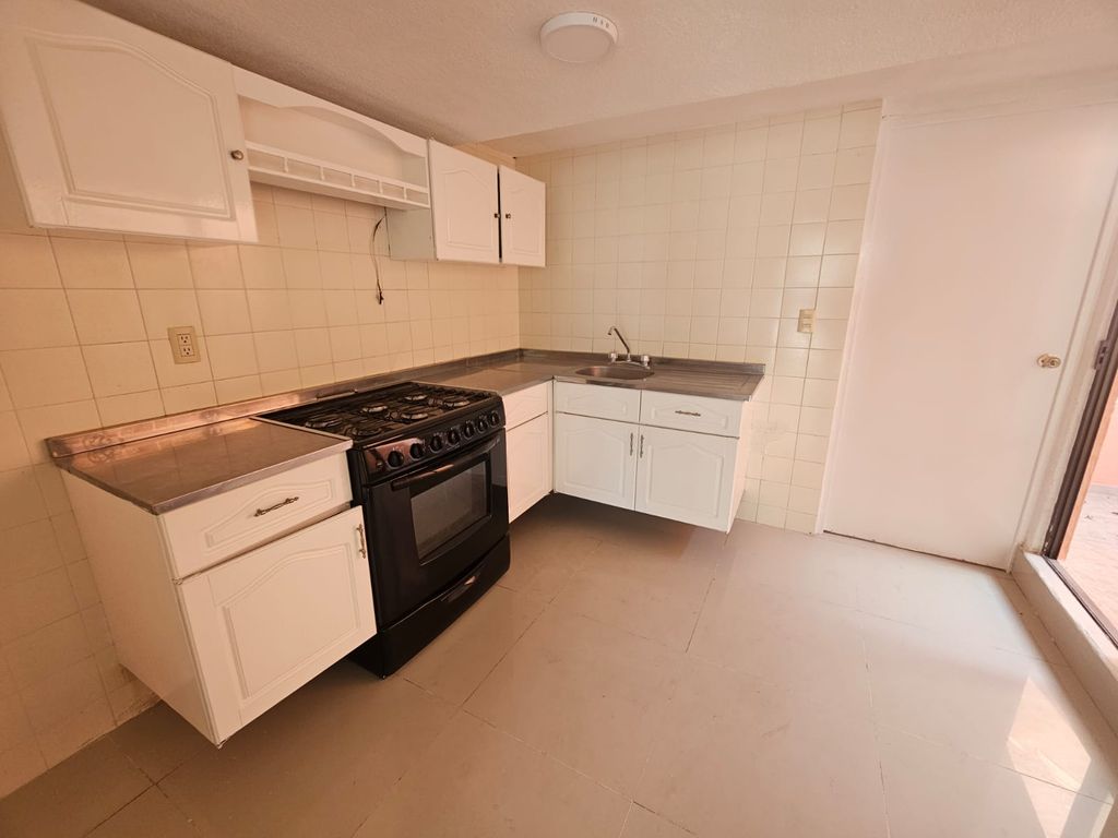 * Cocina equipada con estufa y gabinetes.