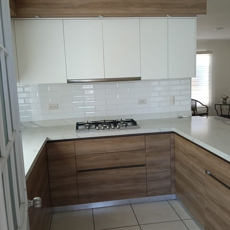 Estacionamiento para 2 autos, área de sala, comedor, cocina integral con parrilla, medio baño, ministplit, cuarto de lavado, patio trasero.