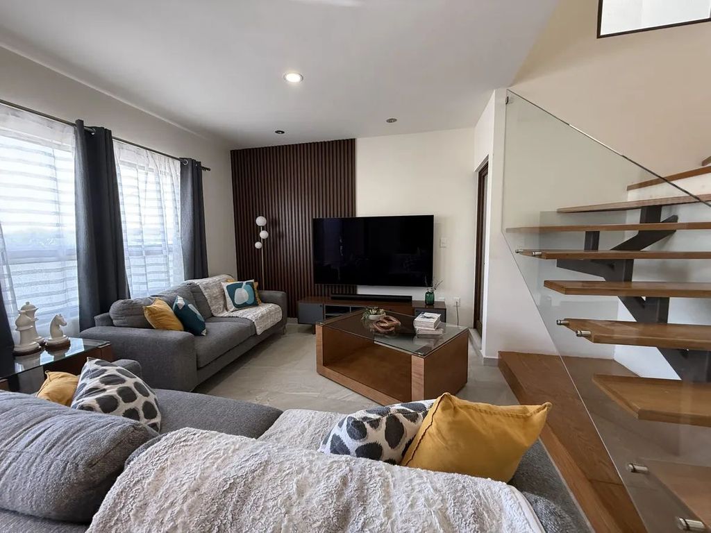 Esta casa no es solo un lugar para vivir, es el espacio donde crearás tus mejores recuerdos. Imagina disfrutar de tus mañanas con la luz natural que entra por sus amplios ventanales, o relajarte en el patio. Con acabados visibles en las fotografías, como pisos de gran formato y detalles en madera, cada rincón ha sido pensado para ofrecerte confort. La cocina integral, con su isla central, es perfecta para quienes aman cocinar y compartir. Además, la cercanía a un parque y la seguridad de la caseta de guardia te brindan la tranquilidad que buscas. No dejes pasar la oportunidad de hacer tuya esta joya.