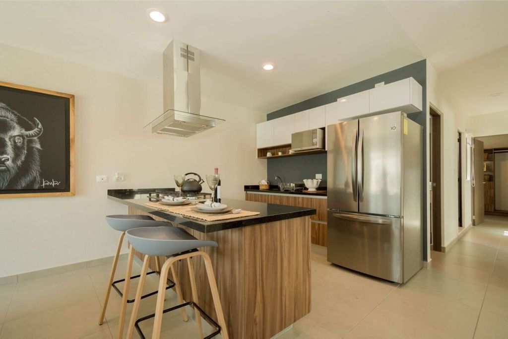 - Cocina integral:Equipada con electrodomésticos modernos y una isla central, perfecta para cocinar y socializar.