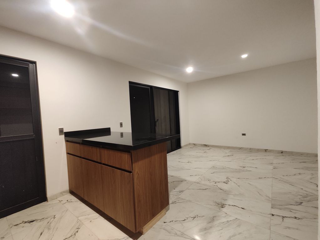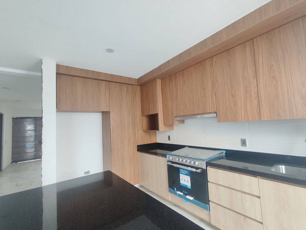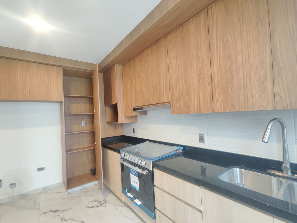 * Cocina equipada con estufa, campana telescopica, alacena y barra desayunador