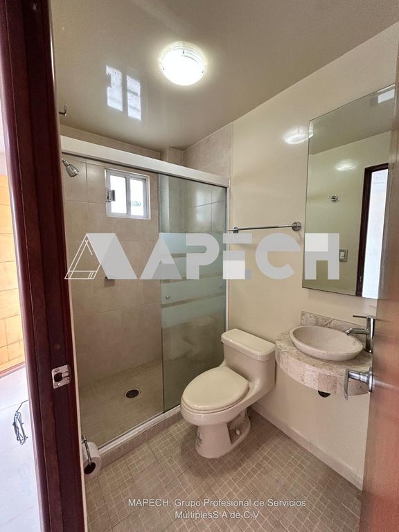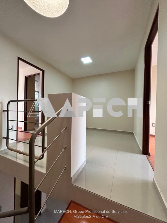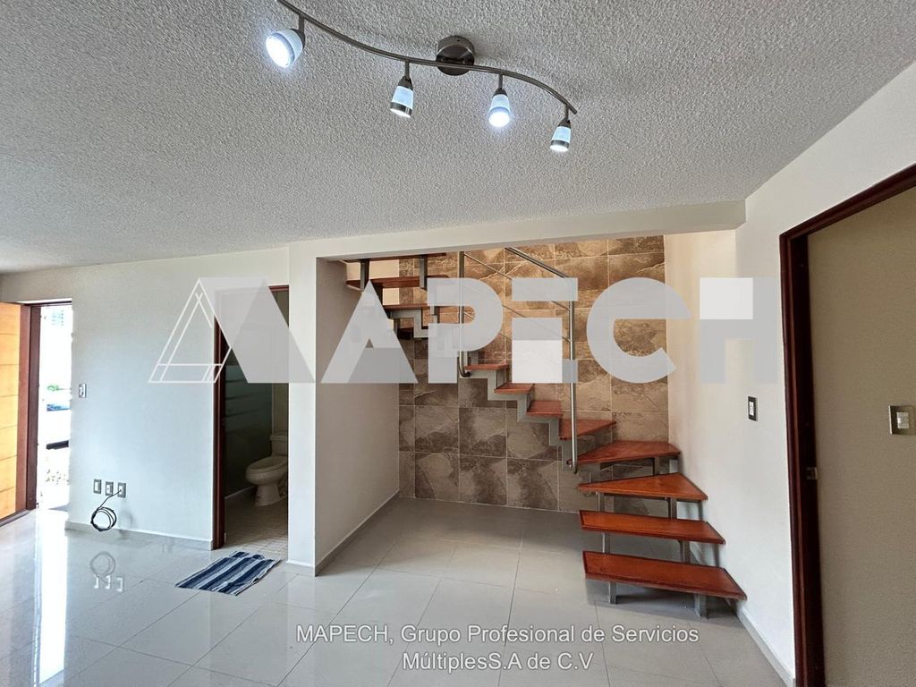 Imagina vivir en un lugar que se adapta a ti y a tus necesidades. Esta casa cuenta con acabados visibles como pisos de cerámica y puertas de madera, además de una escalera con diseño moderno. La fachada presenta detalles en piedra, dándole un toque distintivo. La cocina se ve equipada con gabinetes y estufa. Los baños tienen canceles de vidrio y lavabos de sobreponer.