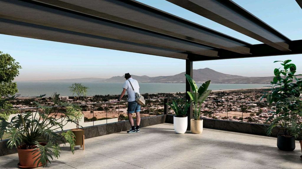 Las amenidades son alberca, terraza para eventos, asadores, áreas verdes, pet park, juegos infantiles y un mirador panorámico con vista directa al lago.