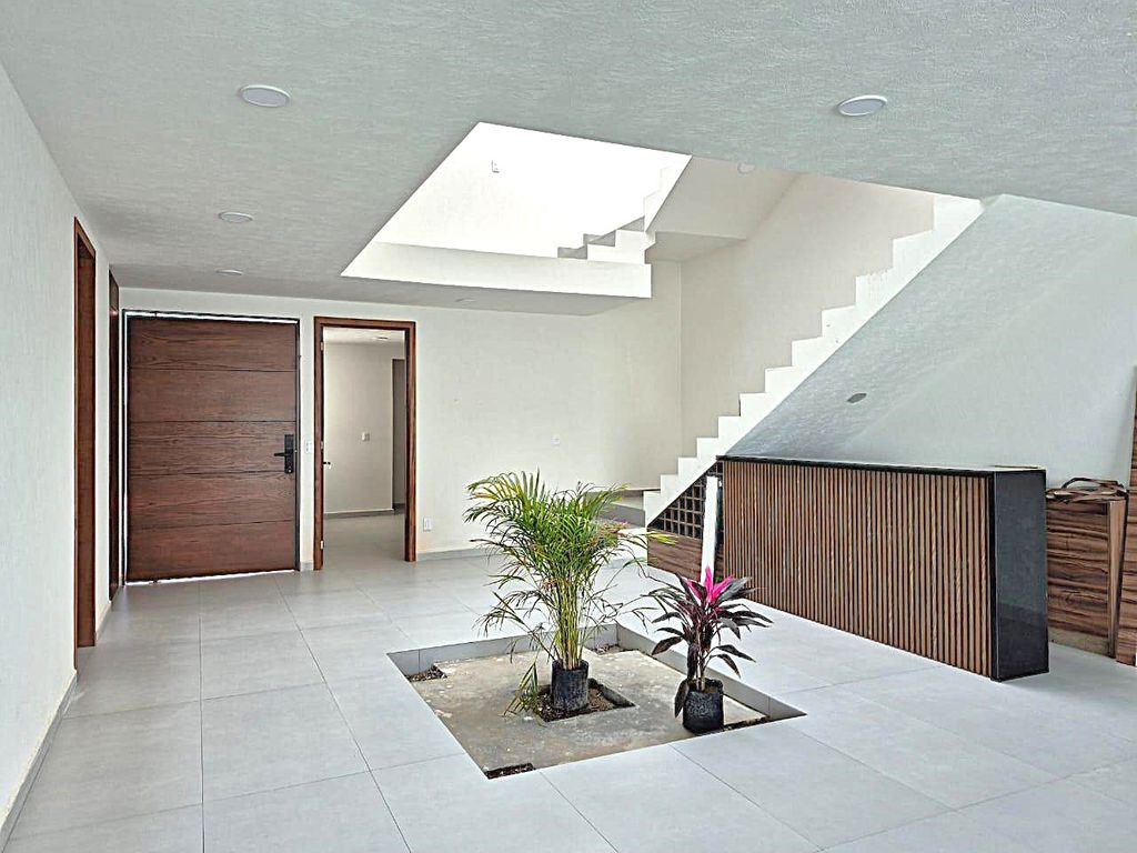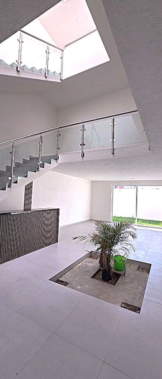 Con una distribución inteligente y acabados de lujo, esta casa ofrece un ambiente acogedor y moderno. La escalera con barandales de cristal y el espacio central con plantas le dan un toque distintivo. Los amplios ventanales conectan el interior con el exterior, creando espacios luminosos y agradables. No dejes pasar la oportunidad de vivir en esta magnífica propiedad.