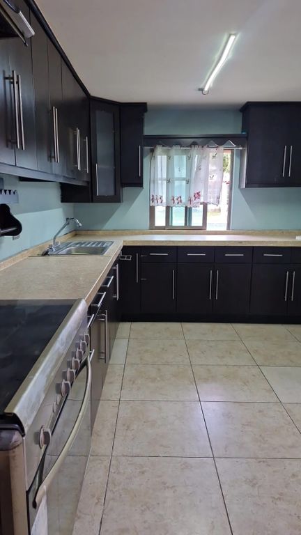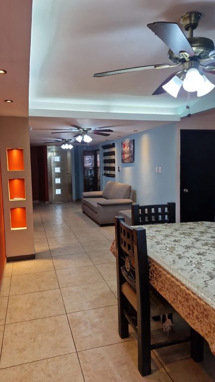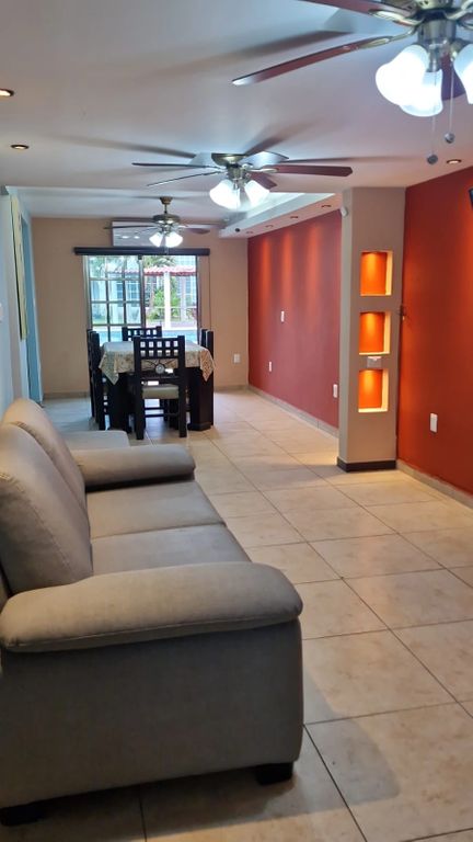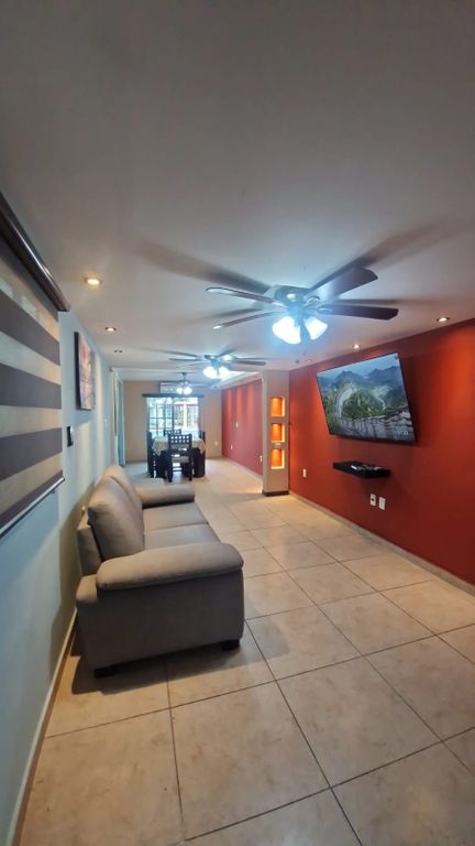Esta casa lo tiene todo para que disfrutes con tu familia. La cocina integral te ofrece amplios gabinetes oscuros y cubiertas claras, perfecta para preparar tus platillos favoritos. El área de sala y comedor es espaciosa, con ventiladores de techo y una iluminación acogedora, ideal para reuniones. Además, cuenta con amenidades que harán tu vida más cómoda y divertida, como la alberca, el asador y el jardín. No busques más, esta es la opción perfecta para ti.
