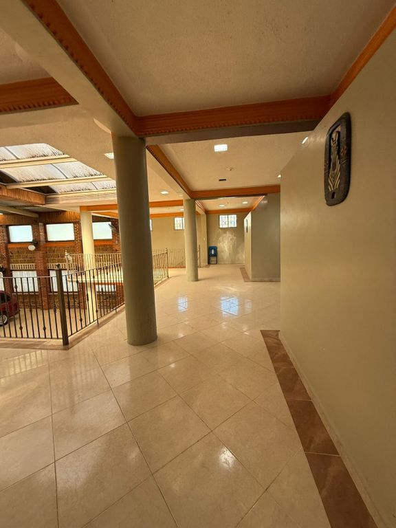 * Detalles visibles: Pisos de cerámica en buen estado, columnas que dan estructura y barandales metálicos en los niveles superiores.