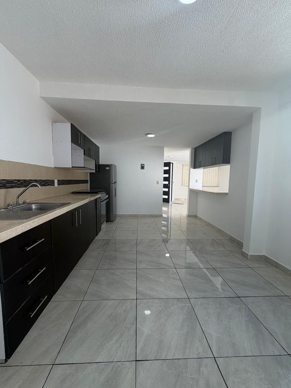 Esta propiedad cuenta con 2 baños, 1 medio baño, 143 m2 de terreno. Con acabados visibles como pisos de cerámica y cocina con gabinetes oscuros, esta casa ofrece un espacio funcional. El diseño exterior presenta líneas limpias y ventanas amplias. La distribución interior incluye un área de sala con acceso a un patio y una cocina equipada. Los detalles como el tanque de gas estacionario y el tinaco son amenidades prácticas.