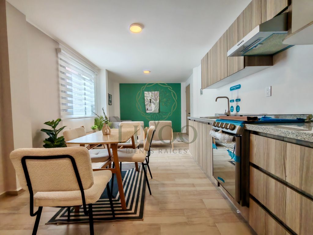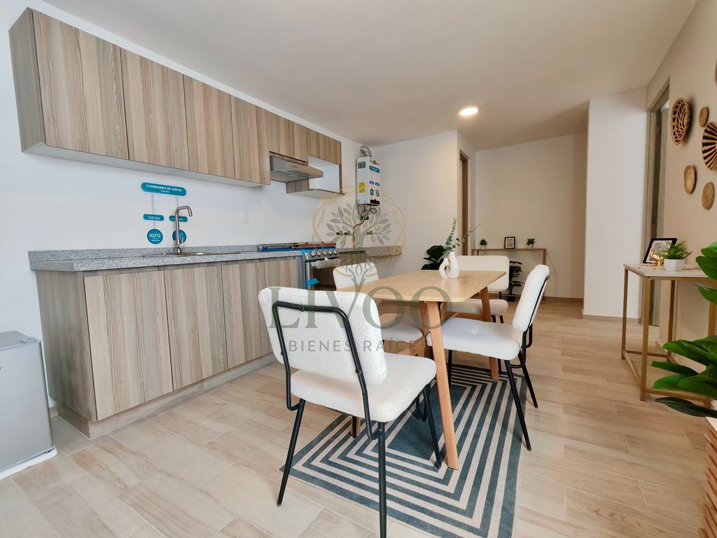 Tu nuevo espacio ideal te espera: 2 recámaras, 2 baños, 67 m² de construcción, con un diseño pensado para tu comodidad.Imagina disfrutar de tus mañanas con vistas desde tu balcón privado o relajarte en el roof garden, un oasis urbano perfecto para desconectar. La cocina equipada e integral te ofrece funcionalidad y estilo, mientras que el elevador facilita tu día a día. Además, tu tranquilidad está garantizada con seguridad 24 horas y la grata noticia de que se aceptan mascotas.