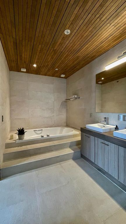 Principal: vestidor baño completo dos lavabos, tina para dos personas de hidromasaje, confecciones para TV internet,