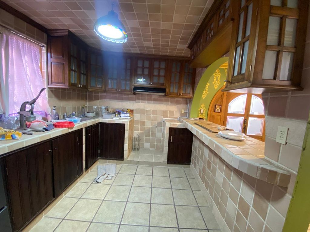 Casa amplia de 2 Niveles con excelente ubicación. Distribuida en Planta Baja: Estancia comedor, Sala, Cocina Integral con desayunador, Medio baño, Pequeña bodega, Escalera de piedra cantera, Estacionamiento frontal y Estacionamiento Lateral ambos con portón eléctrico, Cisterna de 10,000 Litros. Planta Alta con 4 Recámaras (la principal con Tina y Baño completo), Baño completo para 3 Recámaras, Pequeña área para GYM. En azotea se encuentra el área de servicios de lavado y Medio baño. Pisos de Loseta cerámica en ambos niveles. Lista para ser habitada, que no se la ganen!!! Citas visitas con 48 hrs de anticipación. Excelente precio de Oportunidad!!!Ubicación