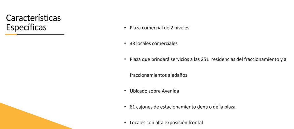 -Plaza diseñada para brindar servicios a las 251 residencias del fraccionamiento y también a fraccionamientos aledaños, aumentando significativamente el mercado potencial.