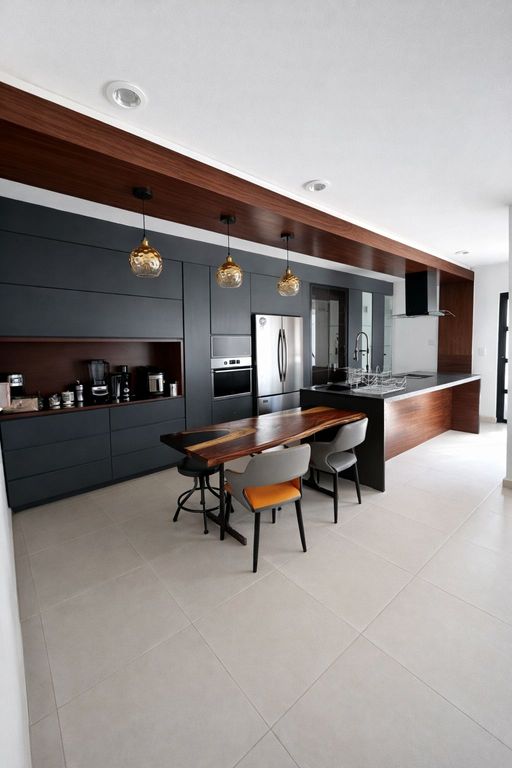 - Cocina amplia equipada con barra desayunadora.