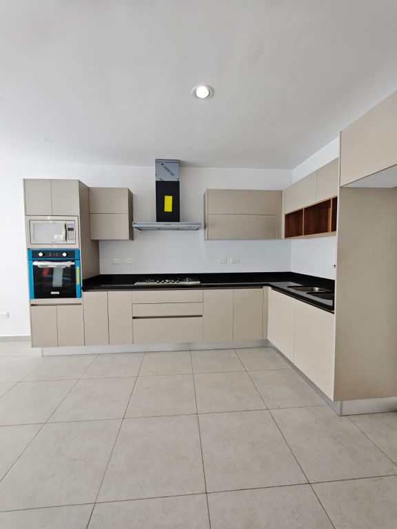 Cochera para 2 autos, área de sala, comedor, cocina integral, 3 habitaciones, 3 baños.