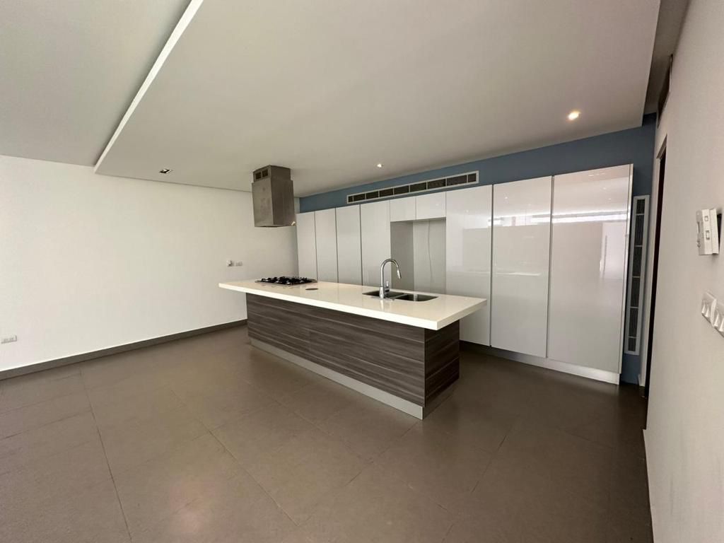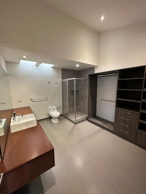 Cochera para 2 autos, área de sala, comedor, cocina integral, 3 habitaciones, 3 y medio baños.