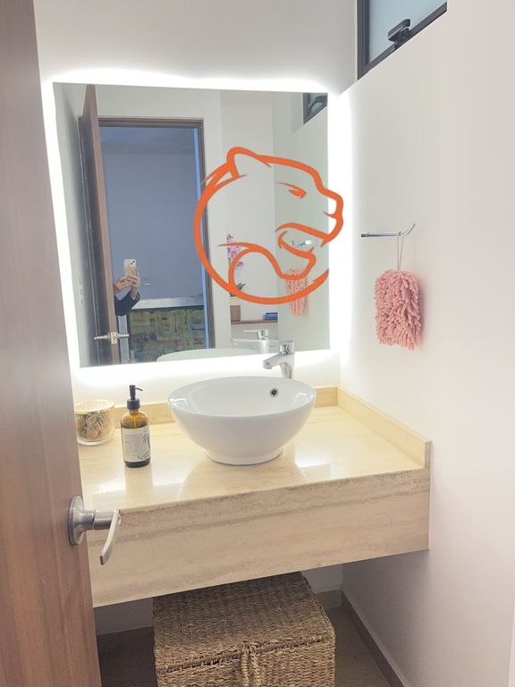 En planta alta, área de oficina o sala de tv para trabajar o relajarse, recámara principal con gran vestidor, baño con doble lavabo y mucha luz.