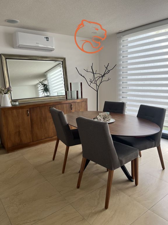 La casa cuenta con aire acondicionado con mini splits, 2 lugares de estacionamiento, 1 techado y excelentes amenidades, alberca, carril de nado, Jacuzzi, Asador, Fogatero, Áreas Verdes, cancha de pádel, coworking, 4 salones de usos múltiples, ludoteca, Gimnasio, Andadores Peatonales, Cafetería, vigilancia y seguridad 24 horas.