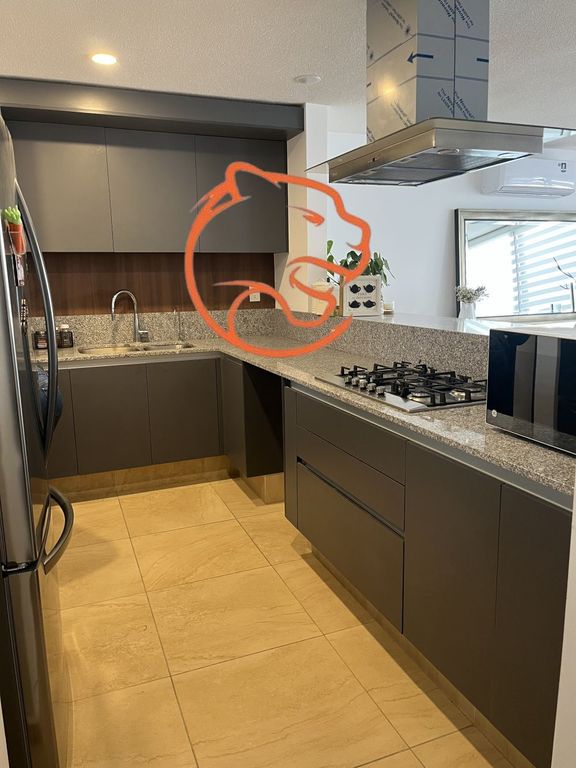 Espacios amplios, recibidor, sala comedor con vista al jardín de aproximadamente 40m, cocina en escuadra con espacio para lavavajillas, espacio para refrigerador de doble puerta, área de lavado integrada.