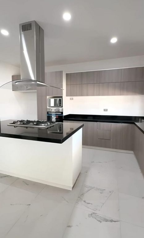 * Diseño y Funcionalidad: Cocina integral con isla, doble altura en recibidor, sala de TV y cochera techada.