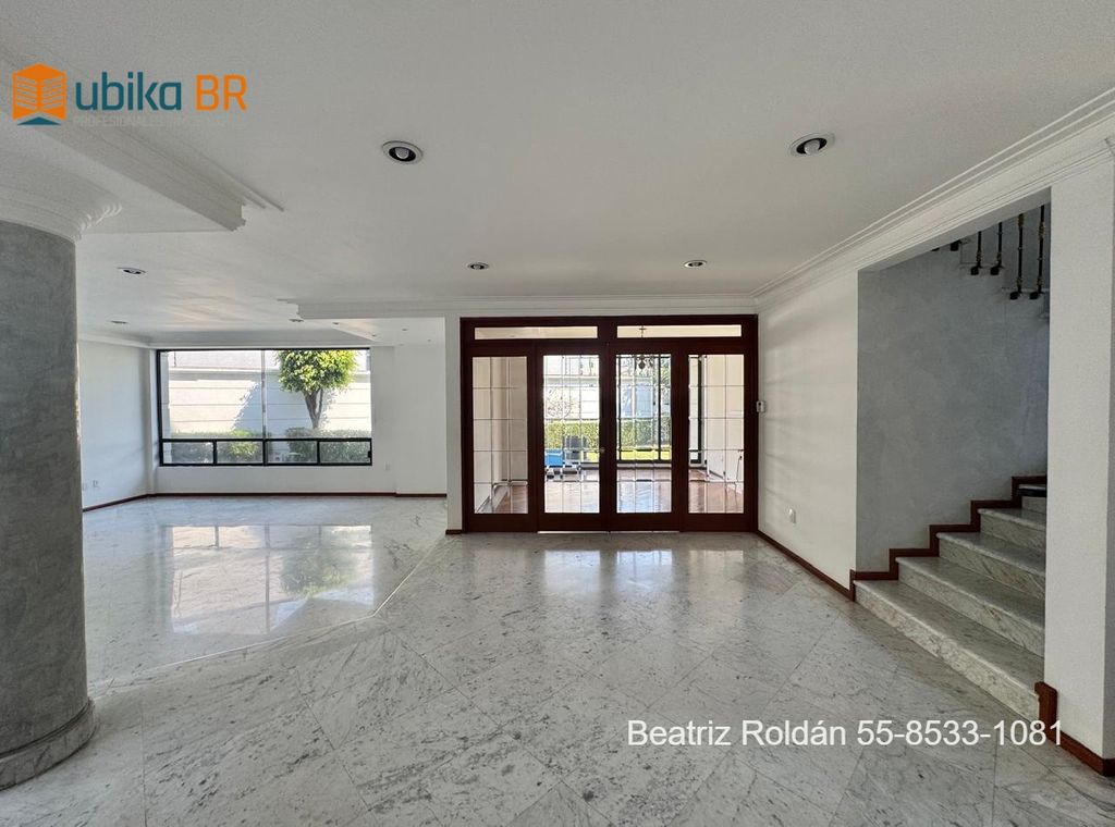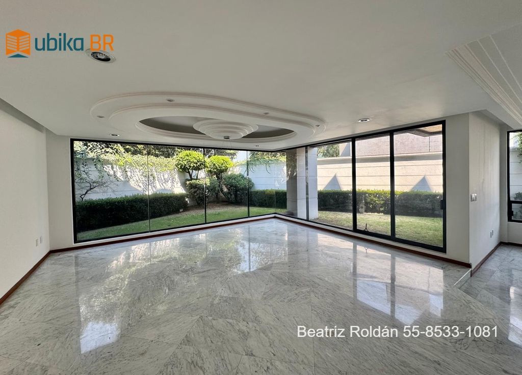 Impecable diseño moderno, ?ubicación inmejorable, ?en esquina con doble entrada, ?muy iluminada, ?techos altos, ?amplísimos espacios, recibidor, ?sala , comedor y estudio con vistas al jardín, ?baño de visitas, ?cocina cerrada, ?desayunador, cuarto de servicio, cuarto de lavado, sala tv, quinta recámara adicional para visitas con baño y closet, toda la planta del sótano con salones de usos múltiples, acceso adicional para la puerta principal de la casa.