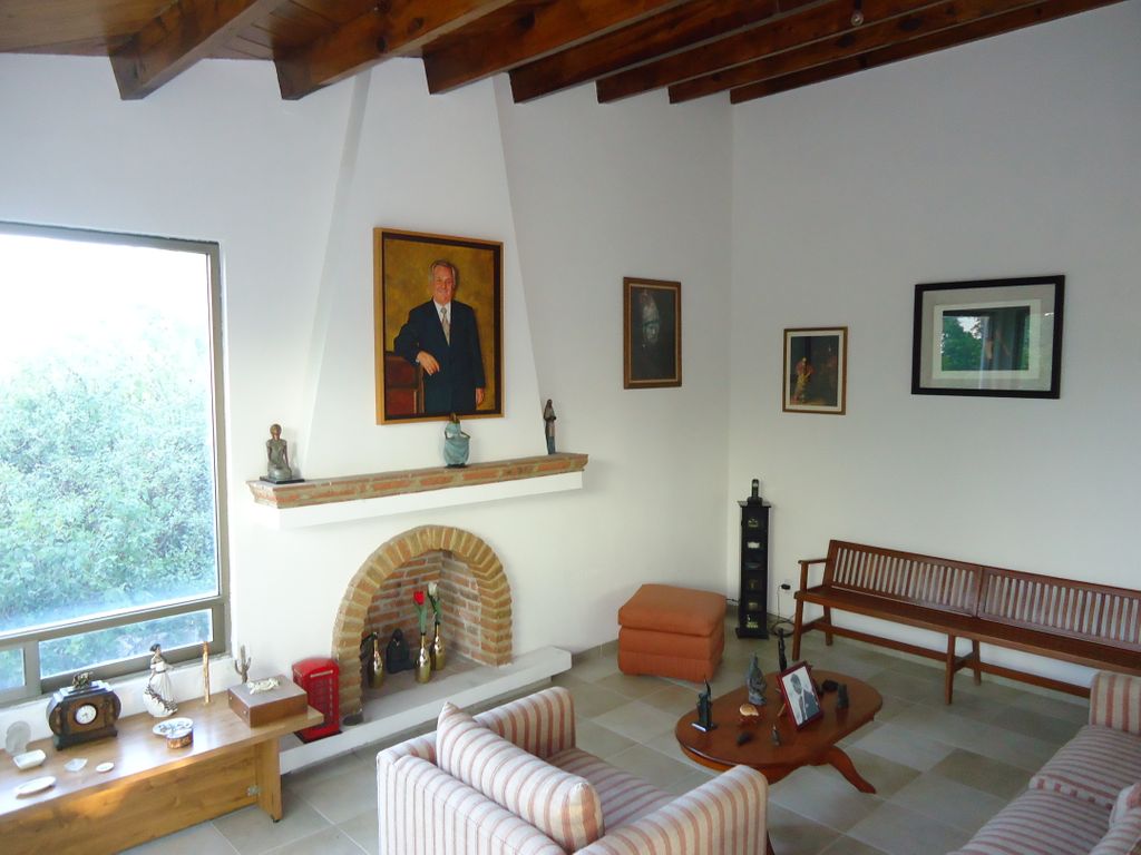 Planta baja: recámara principal con chimenea, vestidor y baño completo con tina, dos recámaras secundarias con clóset, baño completo, sala de TV, cuarto de lavado y cuarto de servicio.