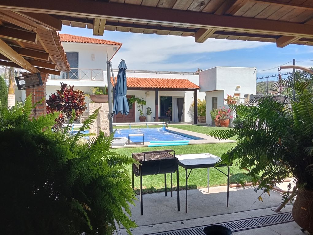 Hermosa casa de descanso dentro del fracc Roca azul, en Jocotepec, cuenta con mas de 500 mts para disfrutar, alberca , cocina y terraza y área de usos múltiples. al exterior, y una construccion de dos plantas con 3 rec. Cada una con baño y vestidor, A/C y ventiladores. La construccion de este espacio es menor a 5 años.Ven y conócela y disfruta con tu familia este hermoso lugar muy acogedor y listo para habitarse.